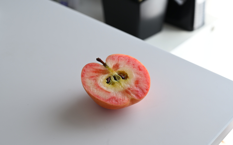 ご存知の方はいらっしゃると思うけど、外見はもちろん、なんと果肉まで赤いりんごなんです。