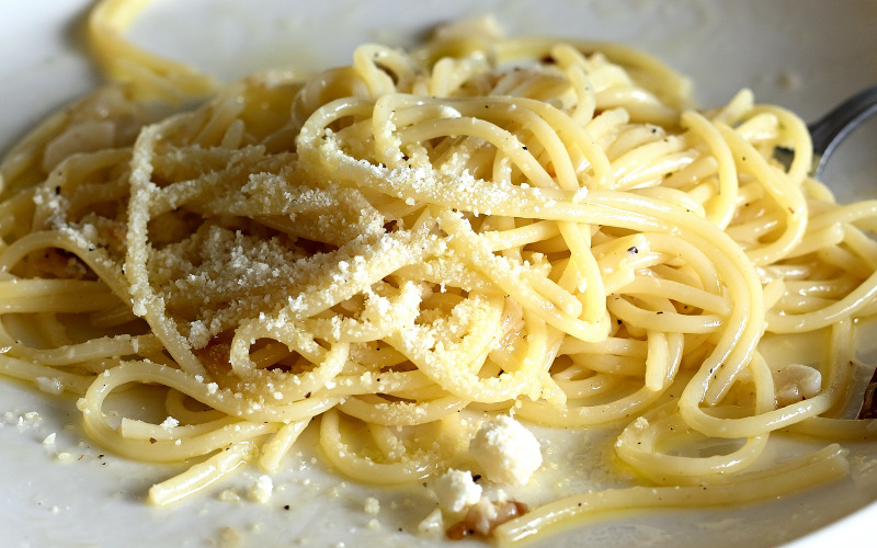 ちなみに、ペペロンチーノとは、にんにく・オリーブオイル・唐辛子で作るシンプルなパスタのことで、正式名称は「スパゲッティ・アーリオ・オーリオ・エ・ペペロンチーノ」。イタリア語でアーリオはにんにく、オーリオは油(オリーブオイル)、ペペロンチーノは唐辛子を意味し、その名の通り材料がその具材そのものになっています。